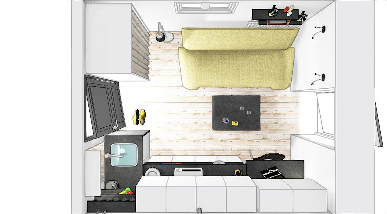 Von der Idee bis zu den 3D-Plänen, von der vollständigen Realisierung der Arbeit (Böden, Wände, Decken, Sanitär, Strom ...)